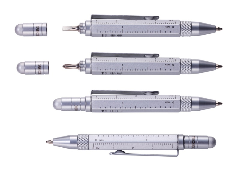 • wielofunkcyjny: linijka w centymetrach i calach, śrubokręt płaski i krzyżakowy, rysik do ekranów dotykowych, wkład w kolorze czarnym + 2 zapasowe wkłady