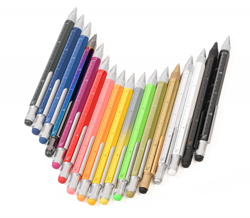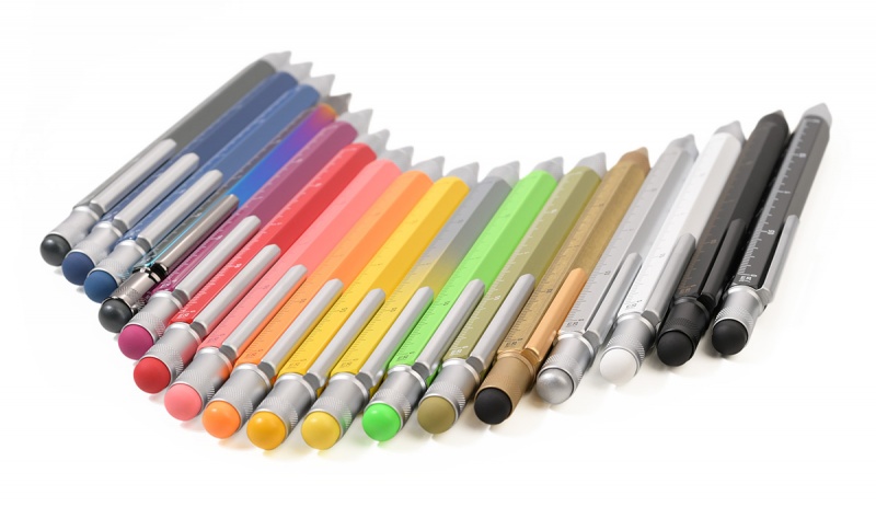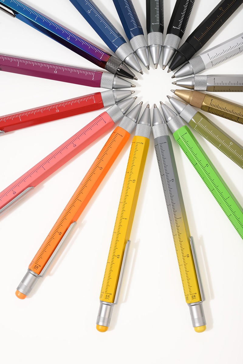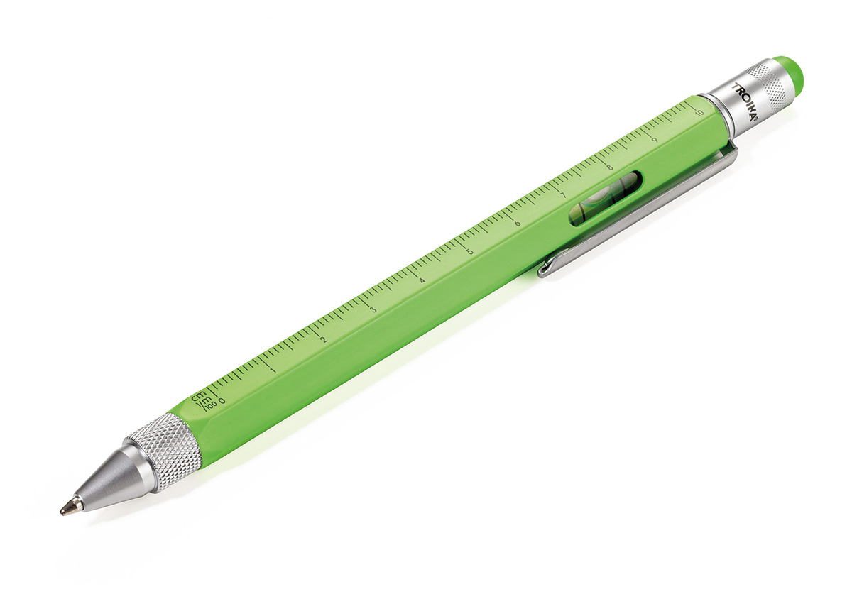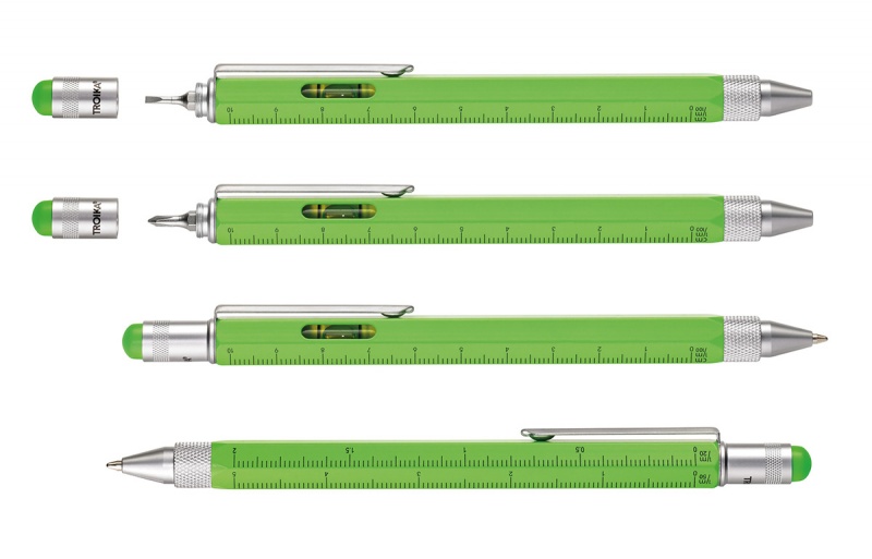 • Ten innowacyjny długopis mieści wszystko, czego w danym momencie potrzebujesz: linijka 10 cm i 4 cale, skalę 1:20 i 1:50, poziomicę, śrubokręt płaski i krzyżakowy oraz rysik do ekranów dotykowych.