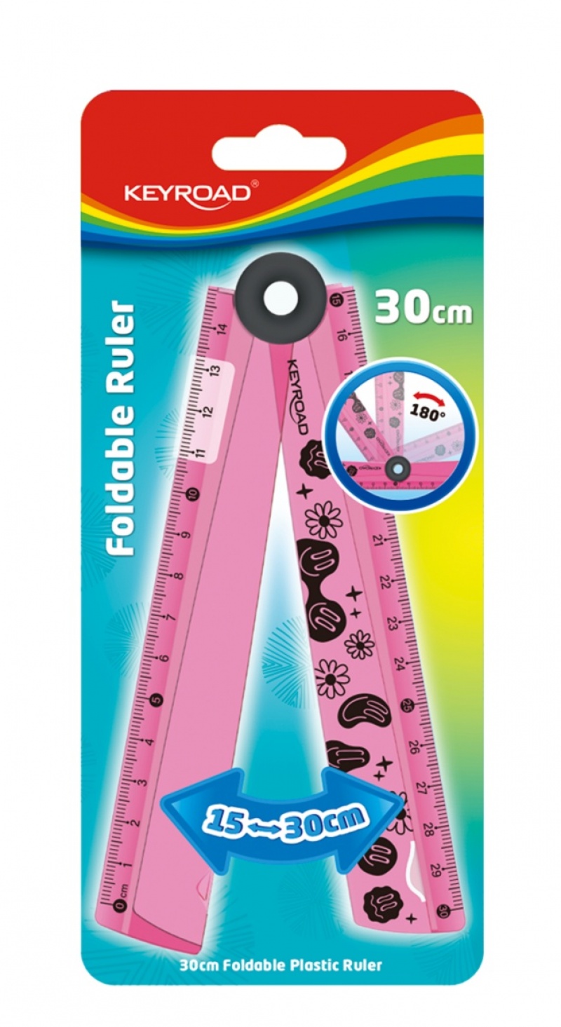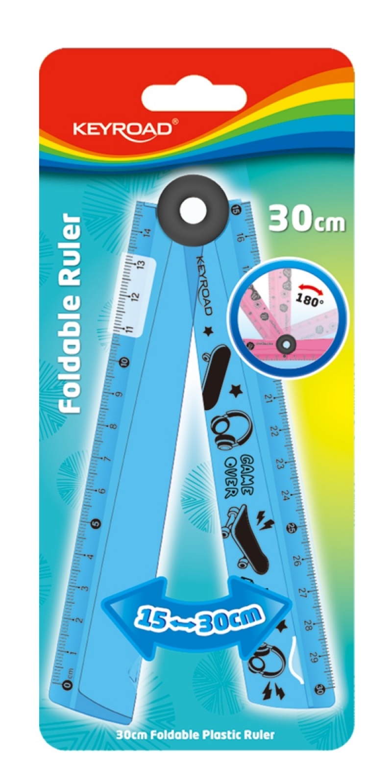 Cyrkola KEYROAD, linijka 15-30cm + kątomierz + cyrkiel w jednym, zawieszka, mix kolorów