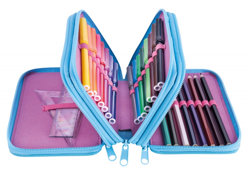 Nazwa produktu Piórnik szkolny GIMBOO, z wyposażeniem, 3 komory, sweet, różowy