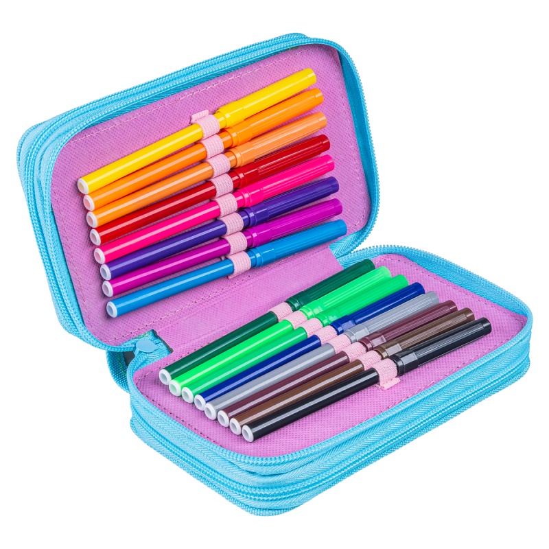 • zestaw zawiera wyposażenie (linijkę, ekierkę, 3 szt. długopisów, ołówek, gumkę, temperówkę, 16 szt. flamastrów, 16 szt. kredek)