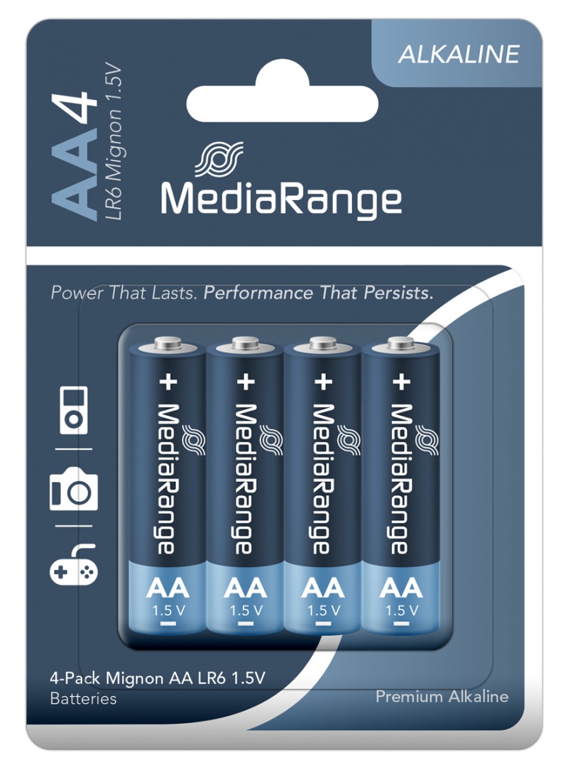 Nazwa produktu Baterie alkaliczne MEDIARANGE Premium Mignon AA, LR6, 1,5V, 4szt.