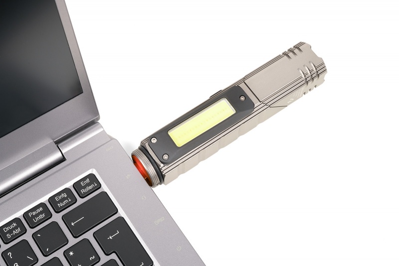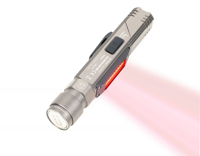 • posiada pięć trybów świecenia, w tym przednią diodę led 200 lm z dwoma poziomami mocy, boczną diodę COB 150 lm jako światło robocze, światło czerwone oraz czerwone migające do sygnalizacji awaryjnej
