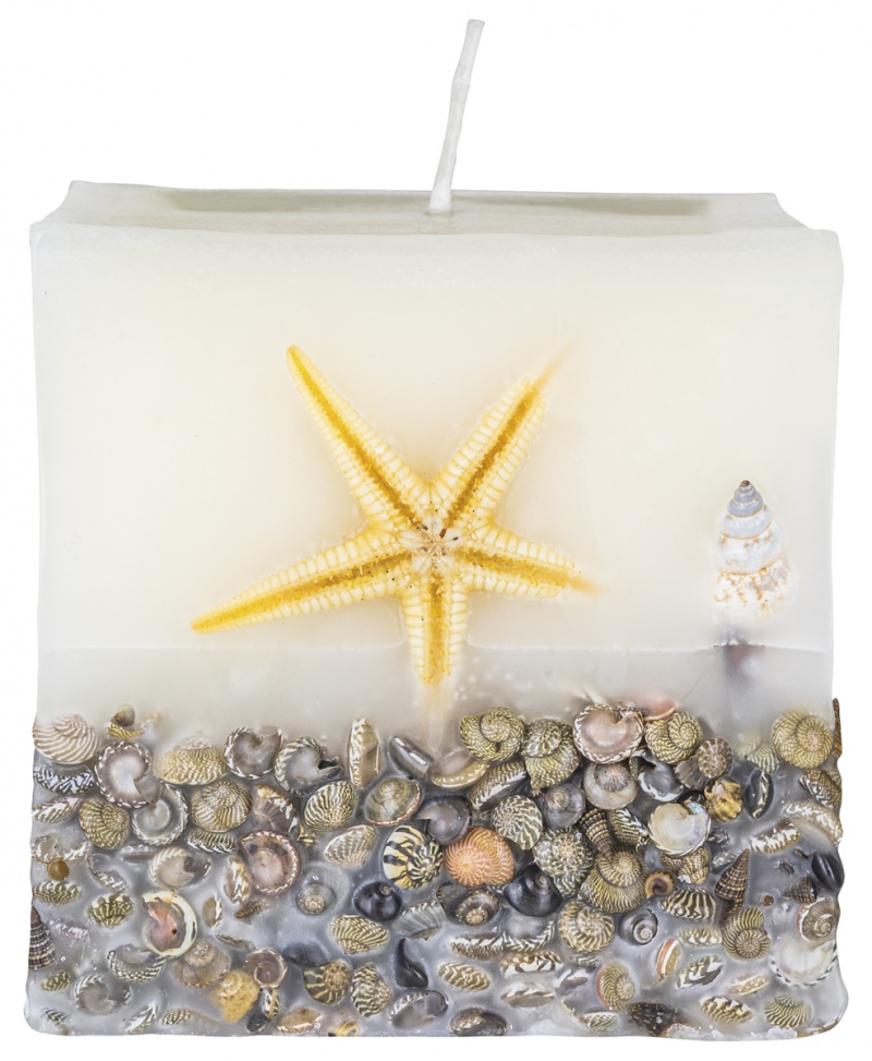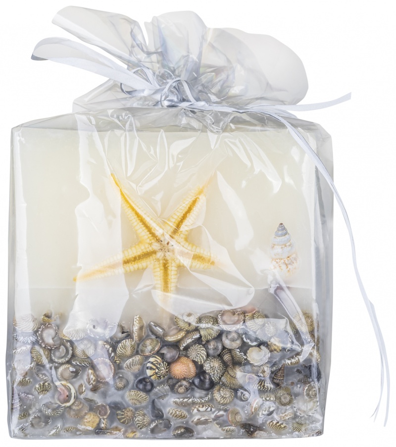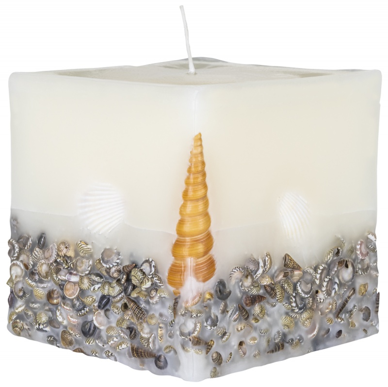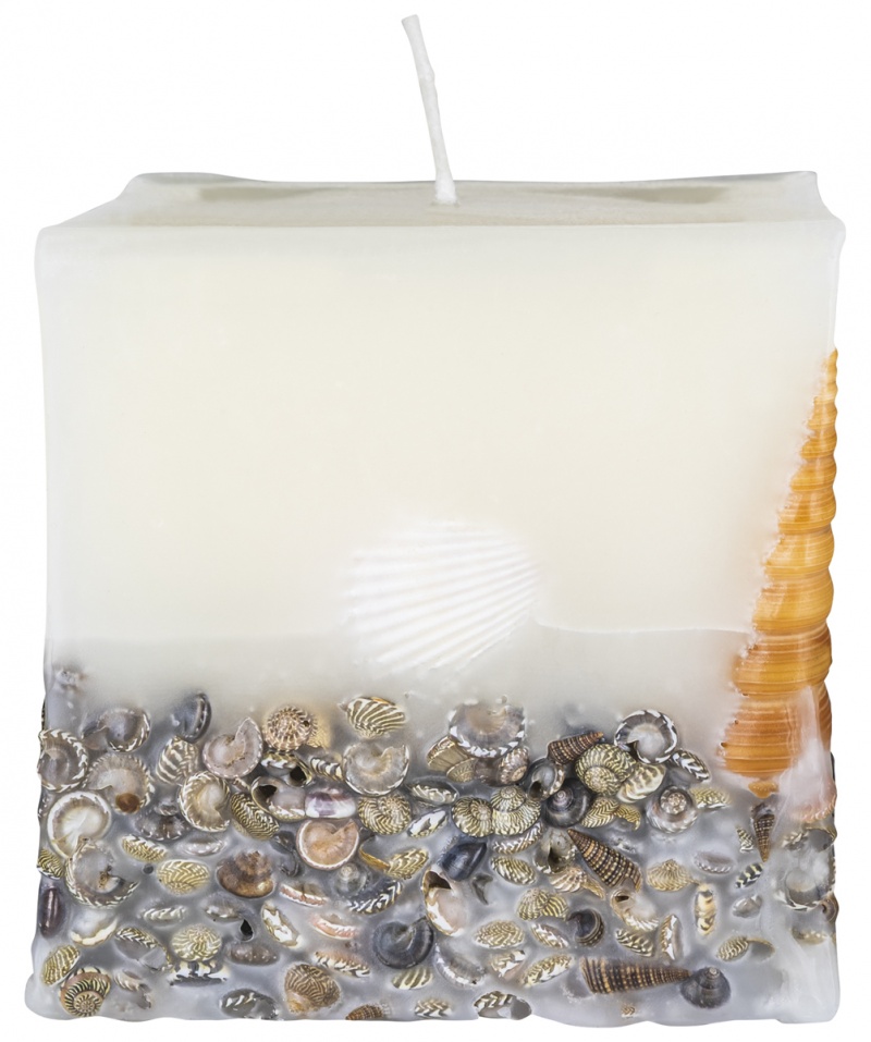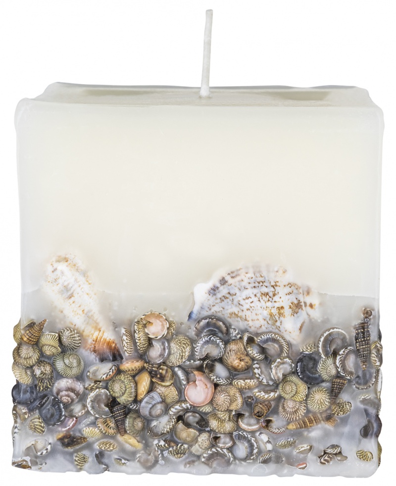 • świeca kwadratowa Brezza z zatopionymi, prawdziwymi muszlami